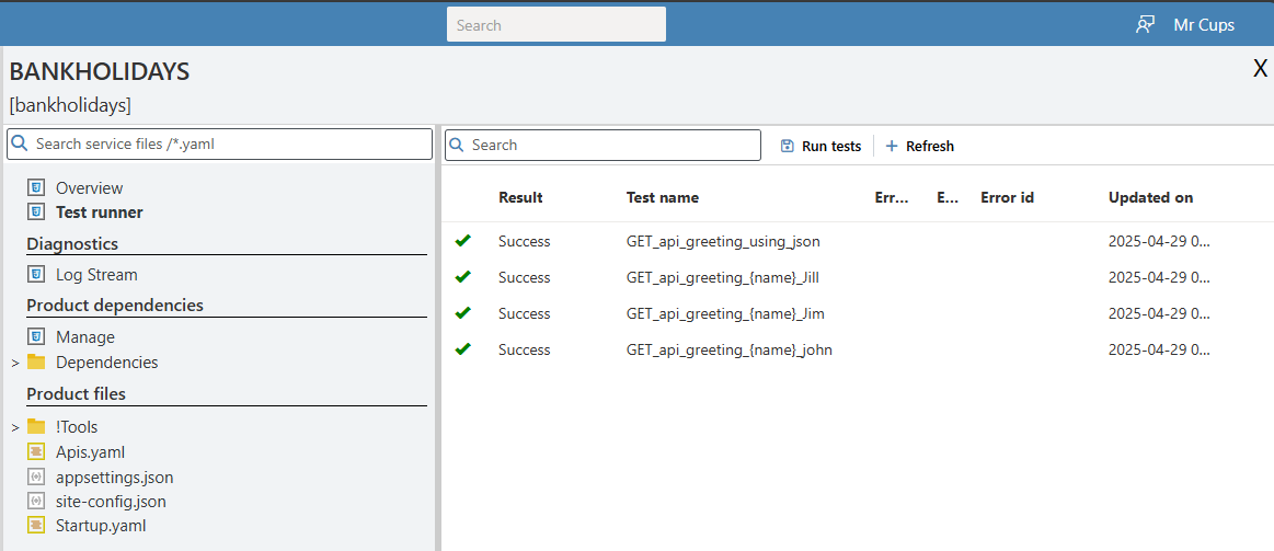 Manually invoke endpoints for testing (Don;lt forget to use your access keys or simply remove the checks in the Startup.yaml file)