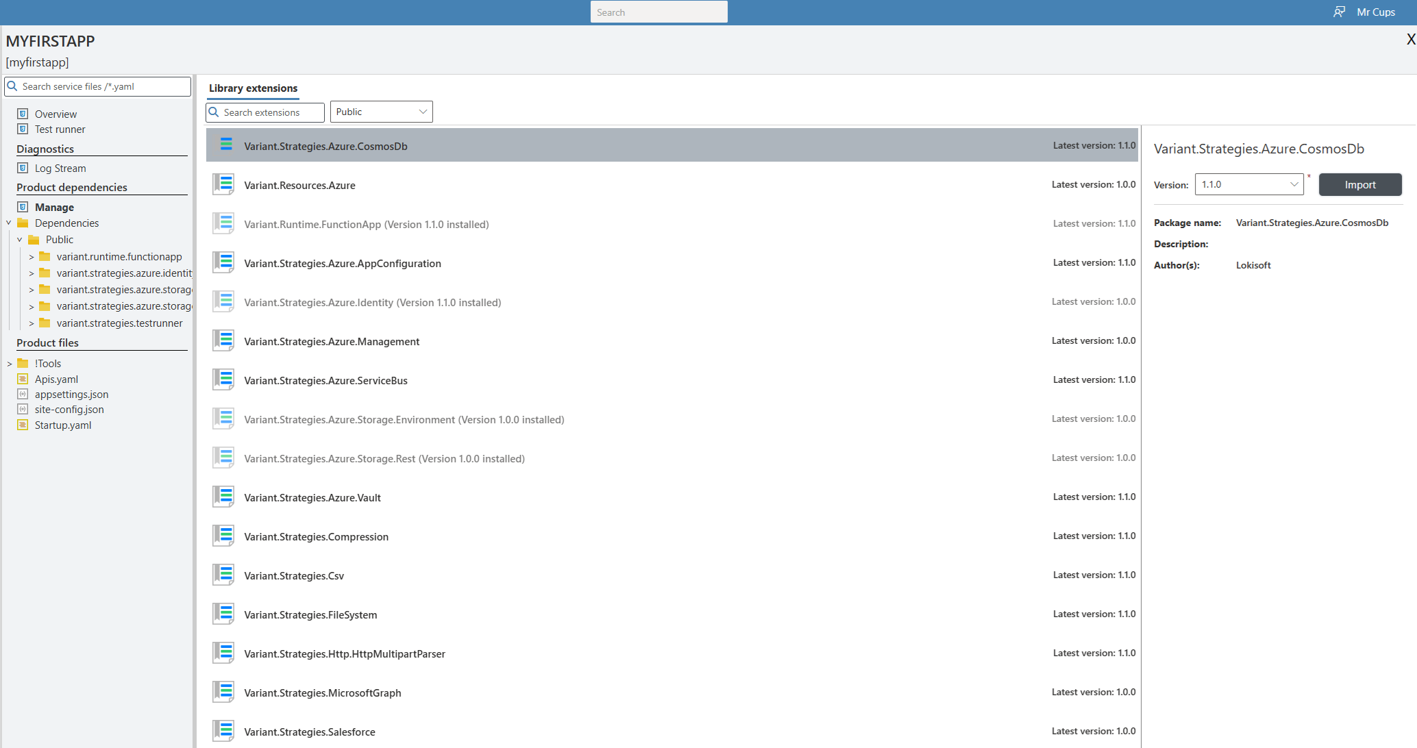 This is where additional functionality can be added in the form of pipes, connectors & strategies. extensions can be downloaded from a public repository or from the subscribers private repository allowing domain specific implementations to be written once and shared amongst different applications. Things can can be shared can be anything such JWT token creation, Storage queue connections etc.