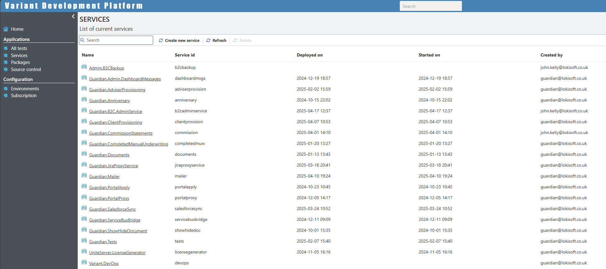 This section manages the creation, development and deletion of all services.